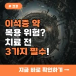 갑작스러운 어지럼증과 함께 세상이 빙빙 도는 듯한 경험은 많은 분들이 겪는 이석증의 주요 증상입니다. 진단 후 흔히 약물 치료를 시작하게 됩니다. 하지만 과연 이석증 약만으로 모든 문제가 근본적으로 해결될 것이라고 확신할 수 있을까요? 이석증 약은 증상 완화를 돕는 보조적인 역할에 그치며, 잘못된 복용 습관은 오히려 예상치 못한 부작용과 위험을 초래할 수 있습니다. 본 글에서는 이석증 … Read more