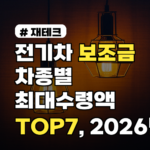 전기차 보조금 차종별 최대수령액 TOP7, 2026년 기준 비교